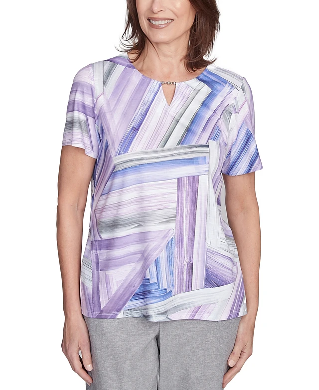 Alfred Dunner Petite Crystal Springs Brushstroke Stained Glass Short Sleeves Top
