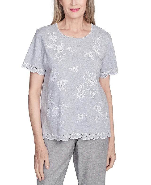 Alfred Dunner Petite Crystal Springs Embroidered Tossed Flower Top