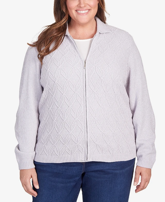 Alfred Dunner Plus Classic Zip-Front Chenille Collared Cardigan Sweater