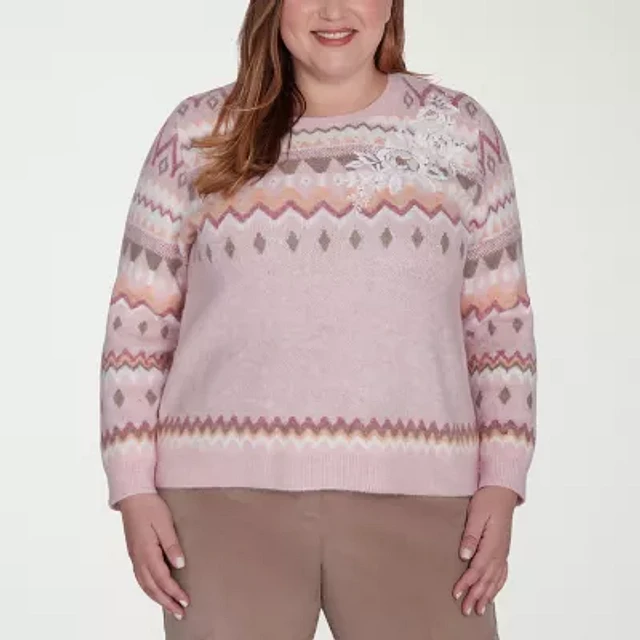 Alfred Dunner Plus Copenhagen Womens Crew Neck Long Sleeve Jacquard Pullover Sweater