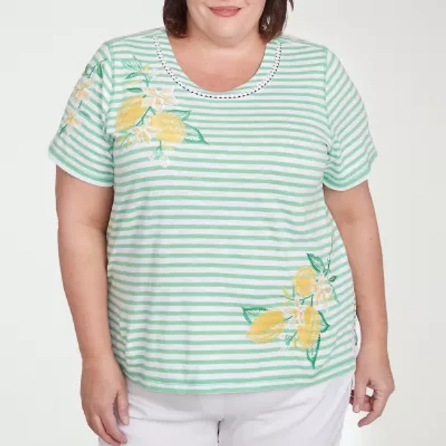 Alfred Dunner Rise And Shine Womens Plus Crew Neck Short Sleeve T-Shirt
