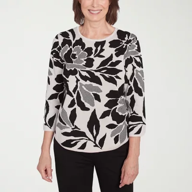 Alfred Dunner Romancing The Stone Womens Crew Neck 3/4 Sleeve Floral Pullover Sweater