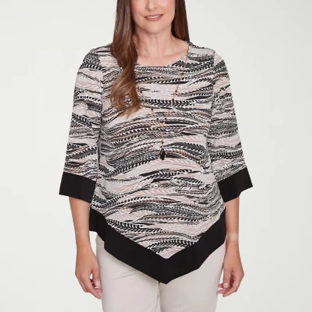 Alfred Dunner Romancing The Stone Womens Split Crew Neck 3/4 Sleeve T-Shirt