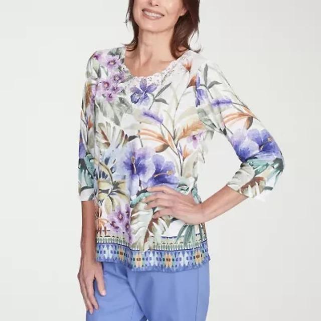 Alfred Dunner Santa Barbara Womens Crew Neck 3/4 Sleeve T-Shirt