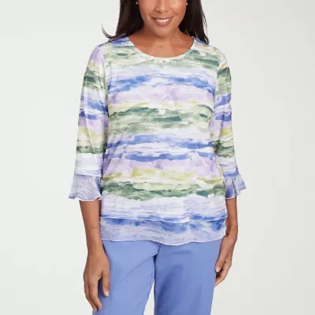Alfred Dunner Santa Barbara Womens Crew Neck 3/4 Sleeve T-Shirt