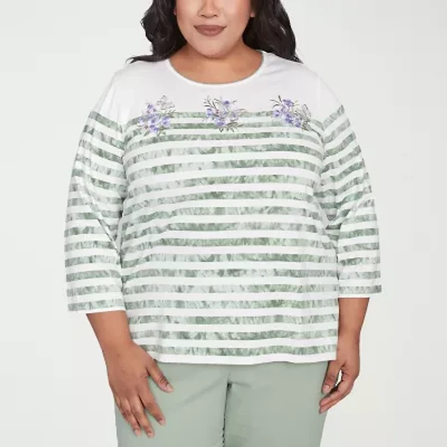 Alfred Dunner Santa Fe Womens Plus Crew Neck 3/4 Sleeve Stretch Fabric T-Shirt