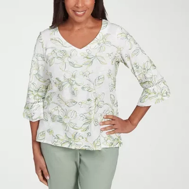 Alfred Dunner Santa Barbara Womens Crew Neck 3/4 Sleeve T-Shirt