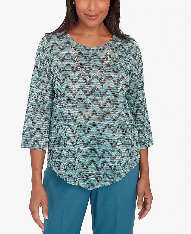 Alfred Dunner Women's Estate of Mind Chevron Shimmer Top with Necklace