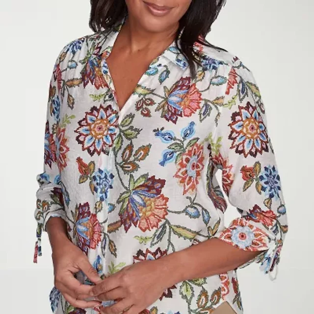 Alfred Dunner Nantucket Womens 3/4 Sleeve Button-Down Shirt