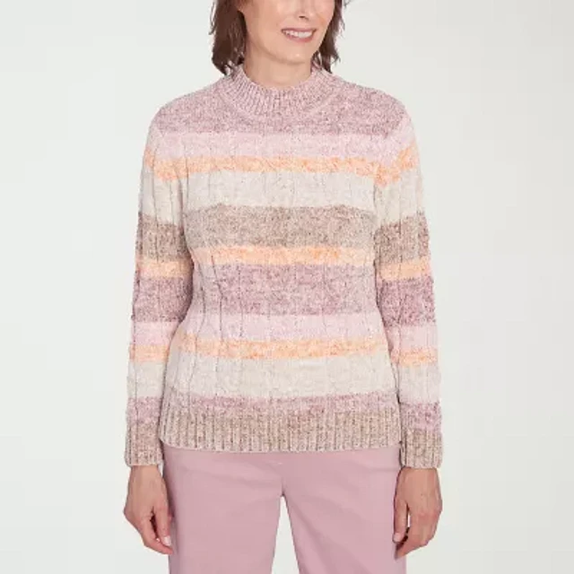 Alfred Dunner Telluride Womens Mock Neck Long Sleeve Striped Pullover Sweater