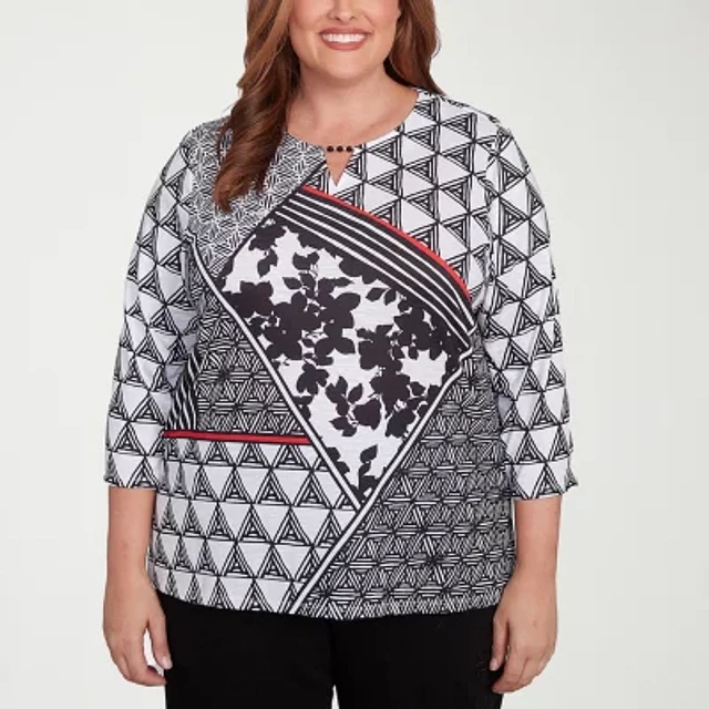 Alfred Dunner Plus Patchwork Diamond Floral Crew Neck Top