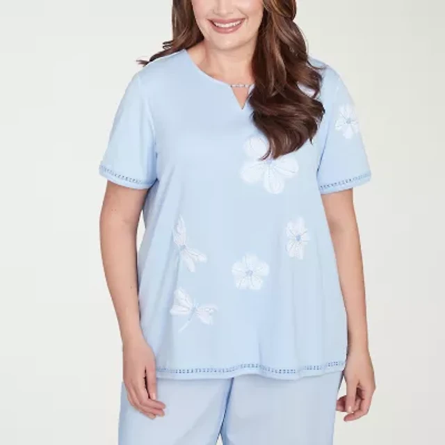 Alfred Dunner Womens Plus Split Crew Neck Short Sleeve T-Shirt