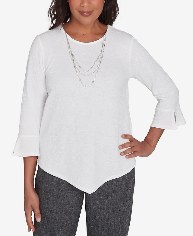 Alfred Dunner Women's Worth Avenue Crew Neck Textured Top with a Detachable Necklace