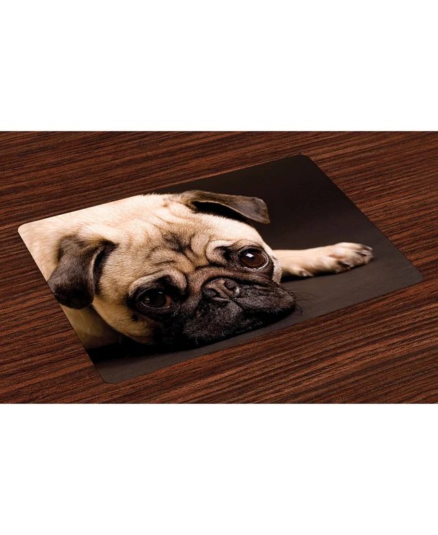 Ambesonne Pug Set of 4 Napkins, 12" x 12"