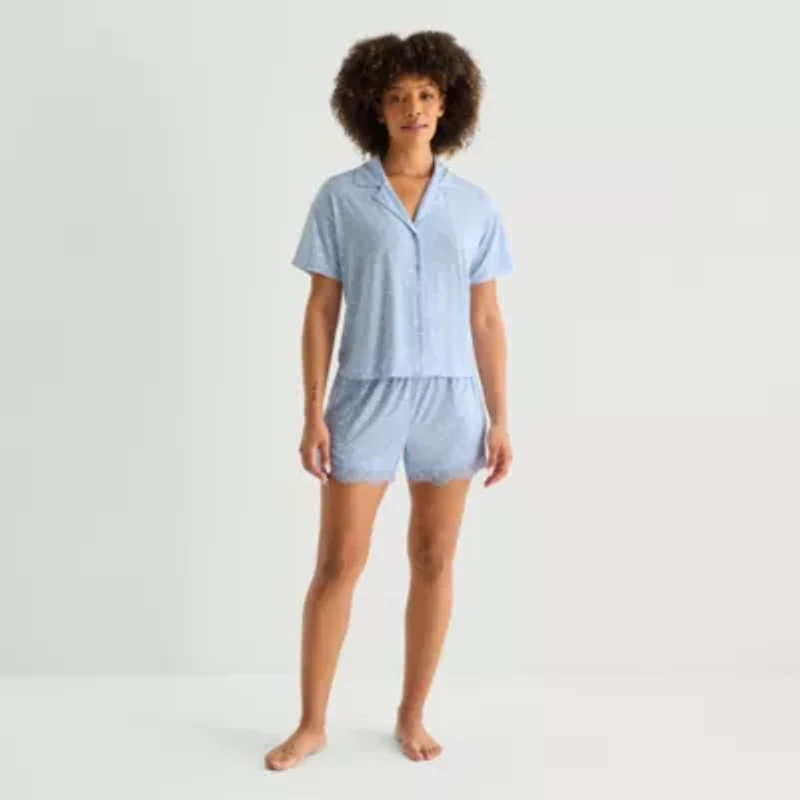 Ambrielle Womens V-Neck Short Sleeve 2-pc. Pajama Sets