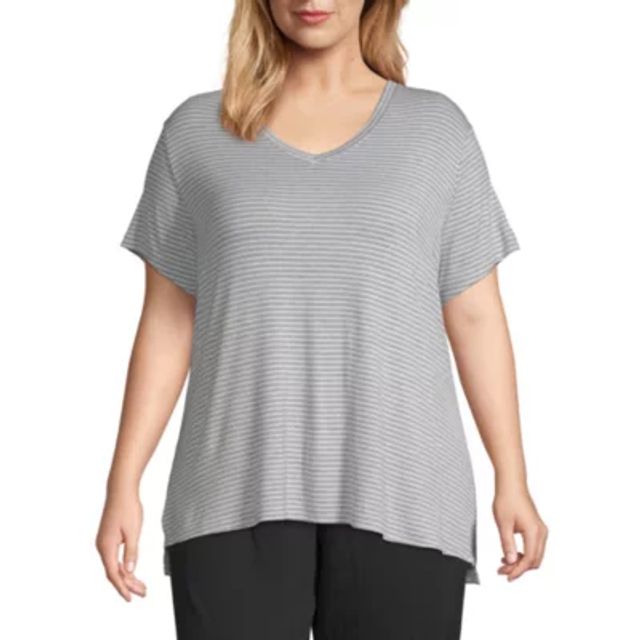 Womens Plus V Neck Short Sleeve Tee,