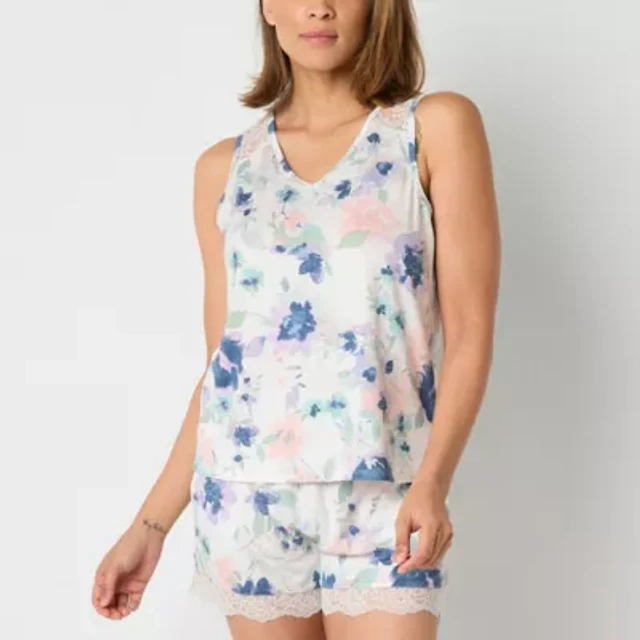 Ambrielle Womens Satin V-Neck Sleeveless 2-pc. Pajama Sets