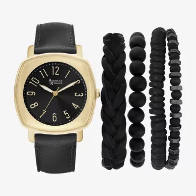American Exchange Mens Black Leather 5-pc. Watch Boxed Set M0139g-42-G02