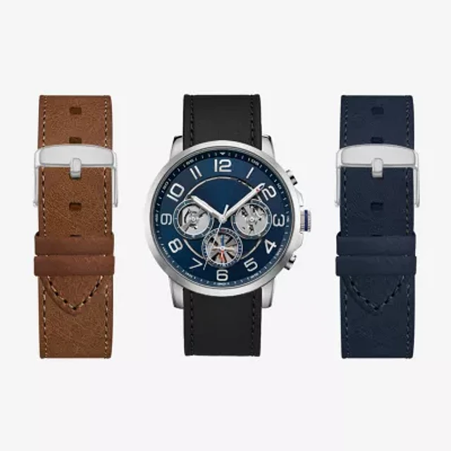 American Exchange Mens Black Leather 4-pc. Watch Boxed Set 8038g-42-G02