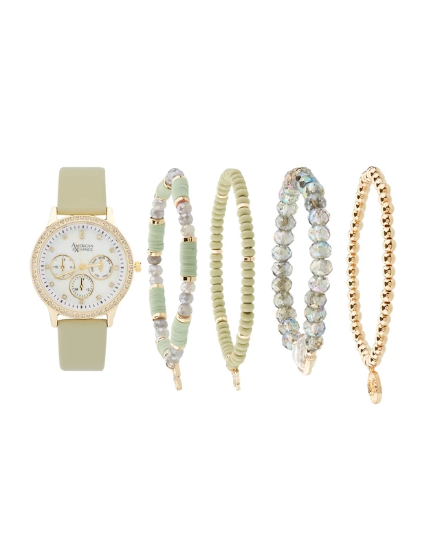American Exchange Women's Green Polyurethane Leather Strap Analog Watch 38mm with Stackable Bracelets Gift Set