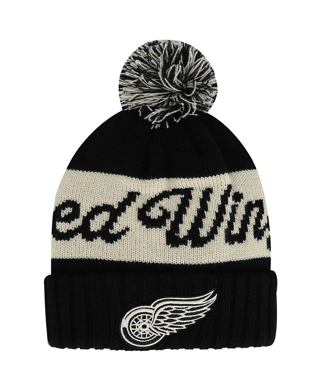 American Needle Men's Black/Cream Detroit Red Wings Adeline Cuffed Knit Hat with Pom