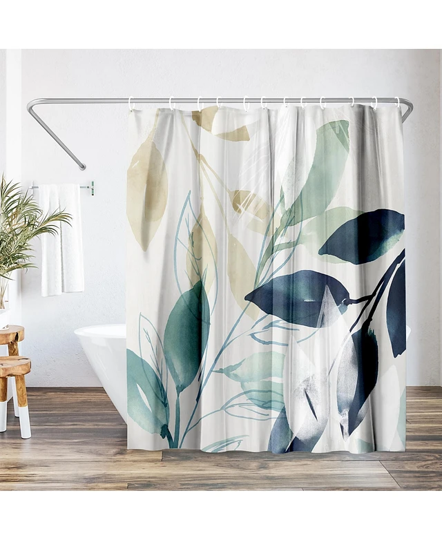 71x74 Abstract Leaf Shower Curtain - 100% Polyester - Water-Resistant Bath Curtain