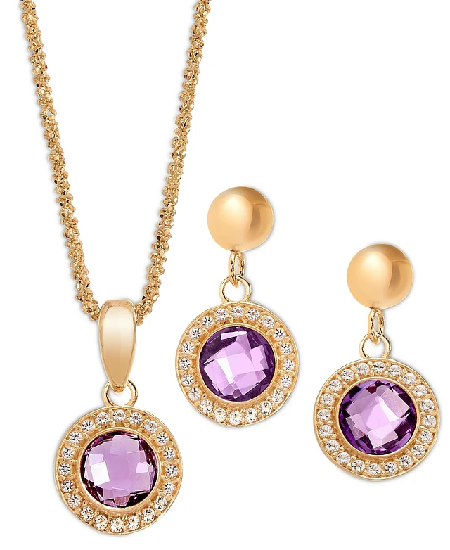 Amethyst (1-3/4 ct. t.w.) & White Topaz (3/4 ct. t.w.) Pendant Necklace & Drop Earrings Set in 14k Gold-Plated Sterling Silver