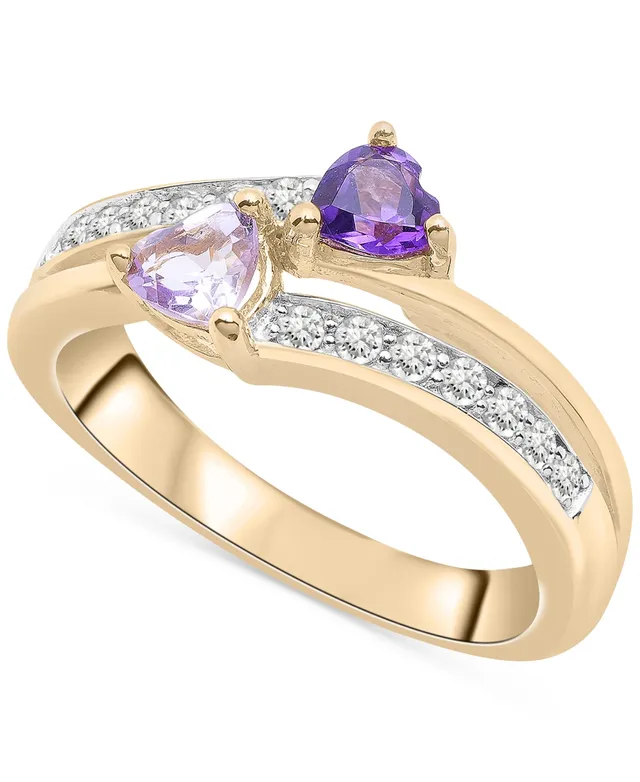 Amethyst (3/8 ct. t.w.) & White Topaz (3/8 ct. t.w.) Heart Ring in 14k Gold-Plated Sterling Silver