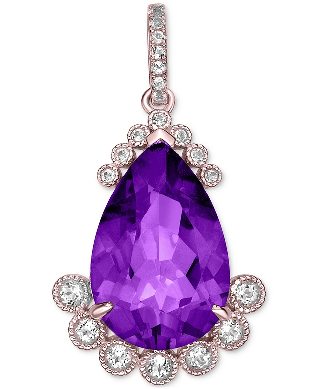 Amethyst (5 ct. t.w.) & White Topaz (5/8 ct. t.w.) Pear 18" Pendant Necklace in Rose Gold-Plated Sterling Silver, (Also in Blue Topaz)