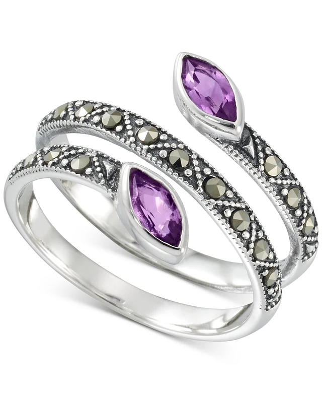 Amethyst (5/8 ct. t.w.) & Marcasite (1/4 ct. t.w.) Coil Ring in Sterling Silver