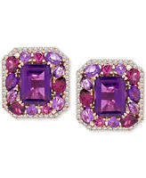 Amethyst (6-1/5 ct. t.w.), Rose de France Amethyst (1-5/8 ct. t.w.) & Diamond (1/2 ct. t.w.) Halo Stud Earrings in 14k Rose Gold