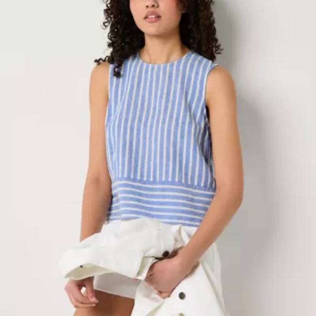 a.n.a Linen Blend Womens Crew Neck Sleeveless Shell
