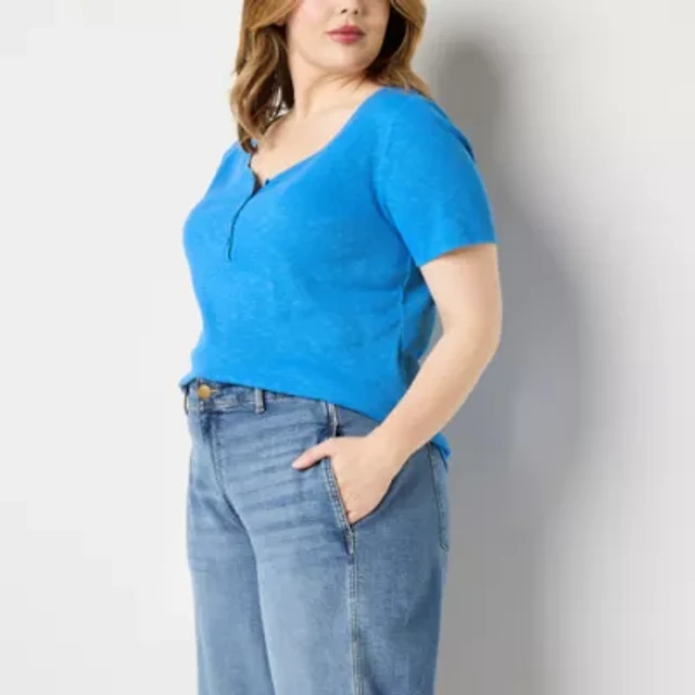 a.n.a Plus Ribbed Womens Short Sleeve Henley Shirt