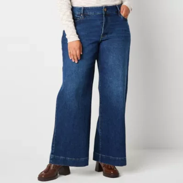 a.n.a Plus Womens Adaptive High Rise Loose Fit Easy-on + Easy-off Jean