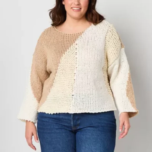 a.n.a Plus Womens Crew Neck Long Sleeve Pullover Sweater