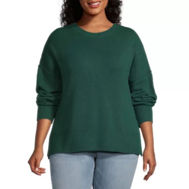 Liz Claiborne Plus Womens Crew Neck Long Sleeve Pullover Sweater