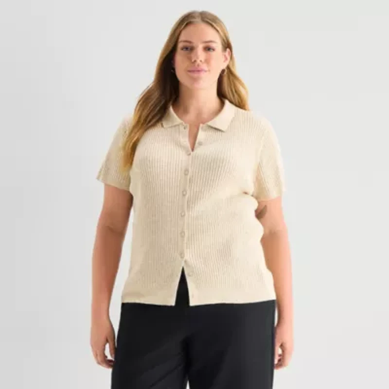 a.n.a Plus Womens Short Sleeve Polo Sweater