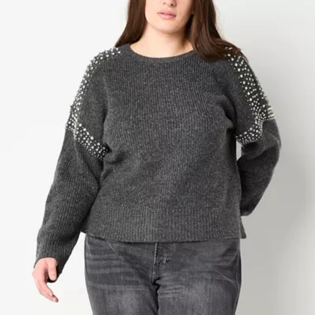 a.n.a Plus Womens Crew Neck Long Sleeve Pullover Sweater