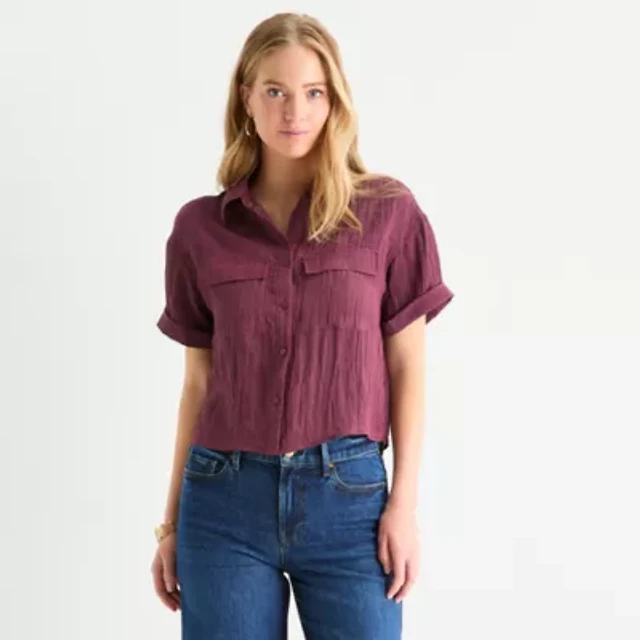 a.n.a Utility Womens Short Sleeve Blouse