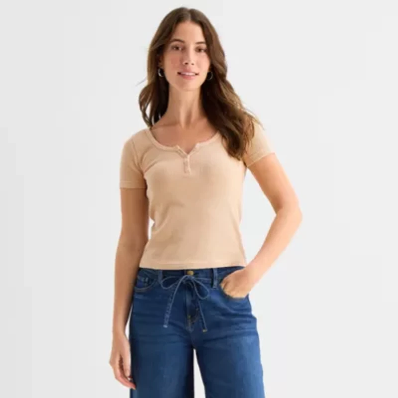 This a.n.a women's waffle-knit t-shirt is a stylish everyday wardrobe basic to have on hand. Made from 100% cotton, this fitted top has short sleeves and a henley neckline with button closures. Wear it with jeans or shorts.