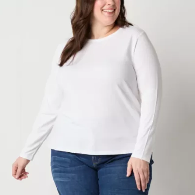 a.n.a Womens Crew Neck Long Sleeve Plus T-Shirt