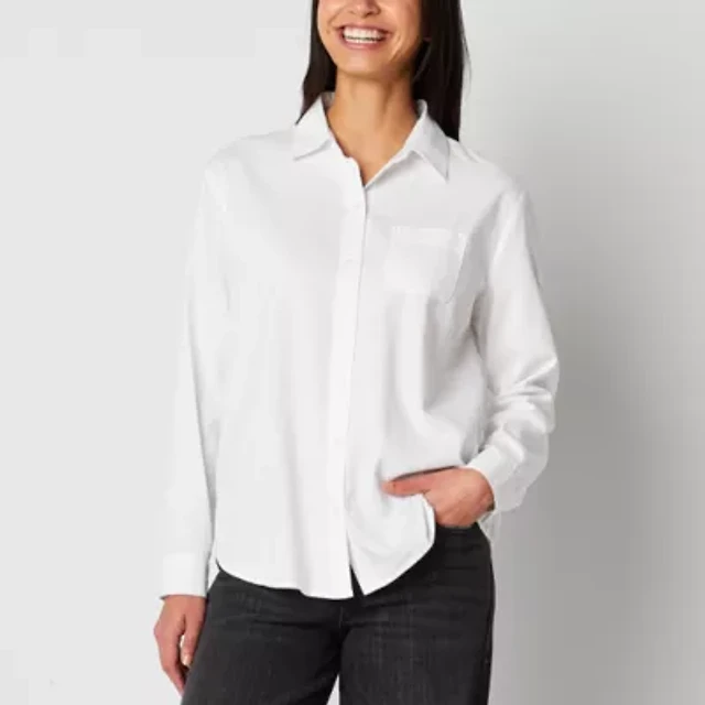 Worthington Womens Cuffed Long Sleeve Modern Fit Button-Down Shirt