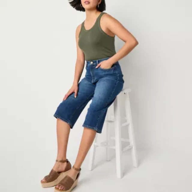 a.n.a Womens High Rise Relaxed Fit Denim Cropped Pant