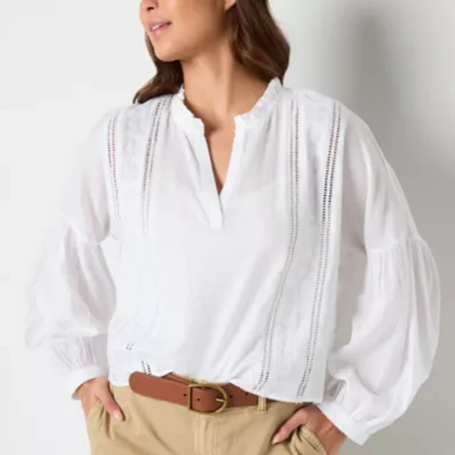 a.n.a Womens Round Neck Elbow Sleeve Blouse