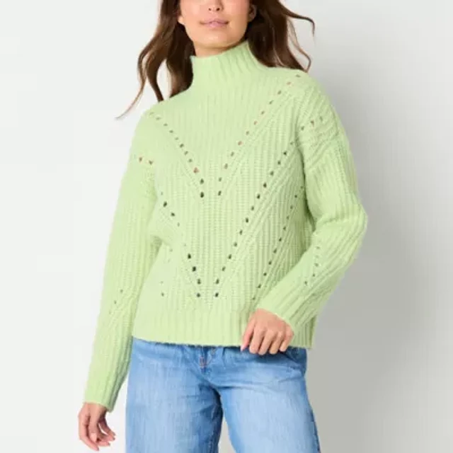a.n.a Womens Mock Neck Long Sleeve Pointelle Pullover Sweater
