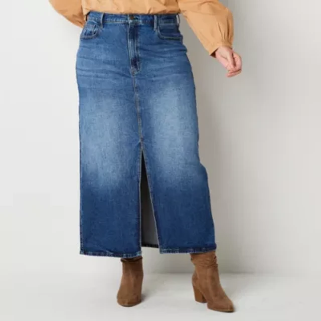 a.n.a Womens Plus High Rise Long Denim Skirt