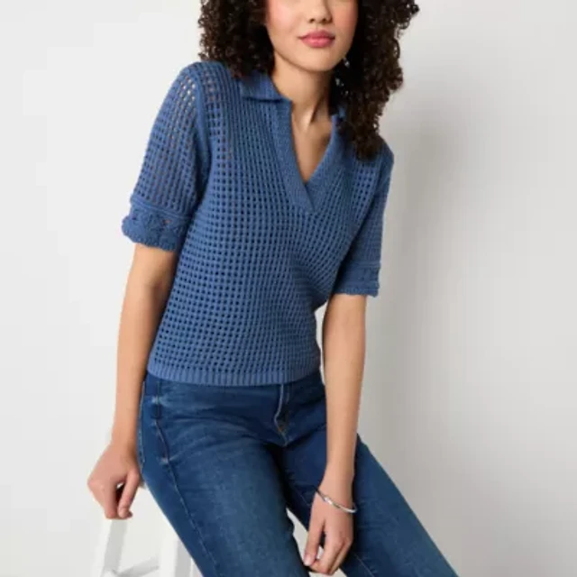 a.n.a Womens Sweater Pointelle Polo