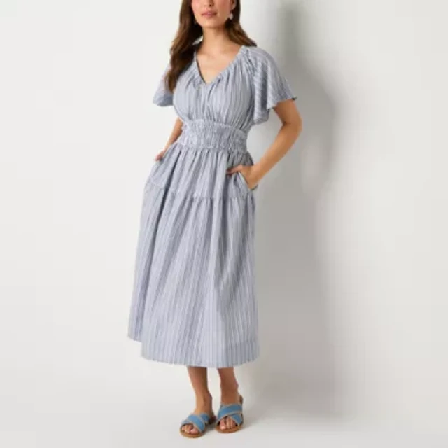 a.n.a Womens Short Sleeve Midi Shirt Dress