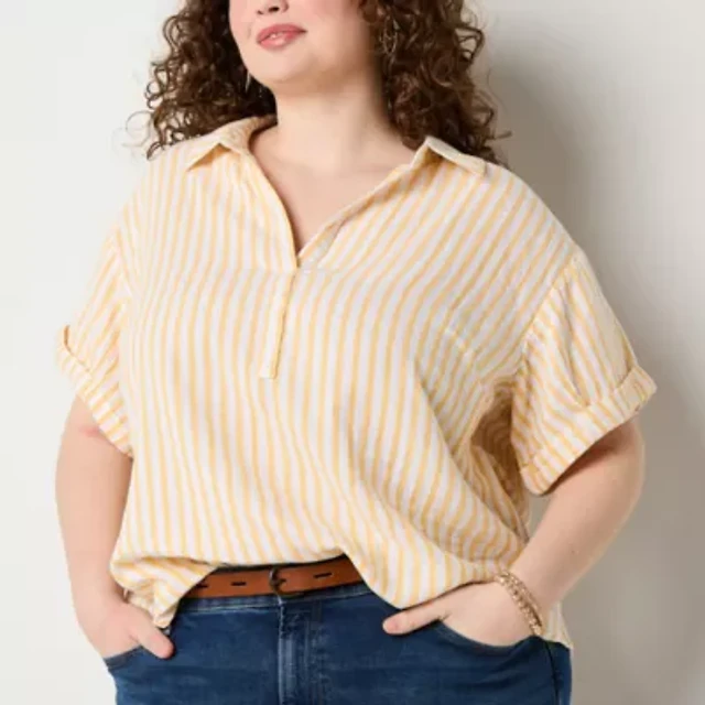 a.n.a Womens Short Sleeve Plus Blouse