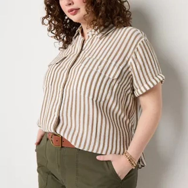 a.n.a Womens Short Sleeve Regular Fit Plus Button-Down Shirt